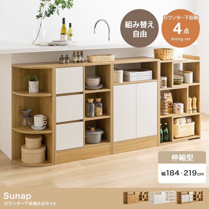 自由に組合わせてご自宅の空間にすっぽり置ける『Sunap』シリーズのカウンター下収納4点セット