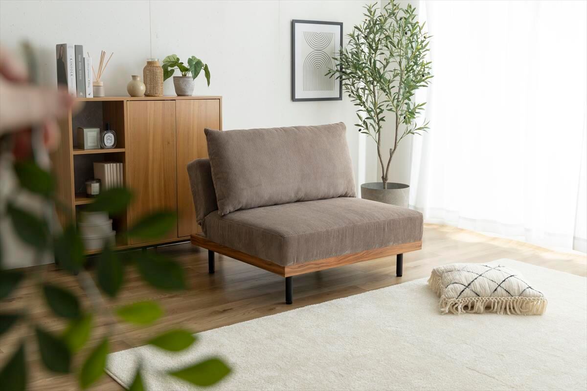 コーデュロイ×木目柄×アイアンの異素材MIXが味わい深い『Ridley(リドリー)』リクライニングソファ