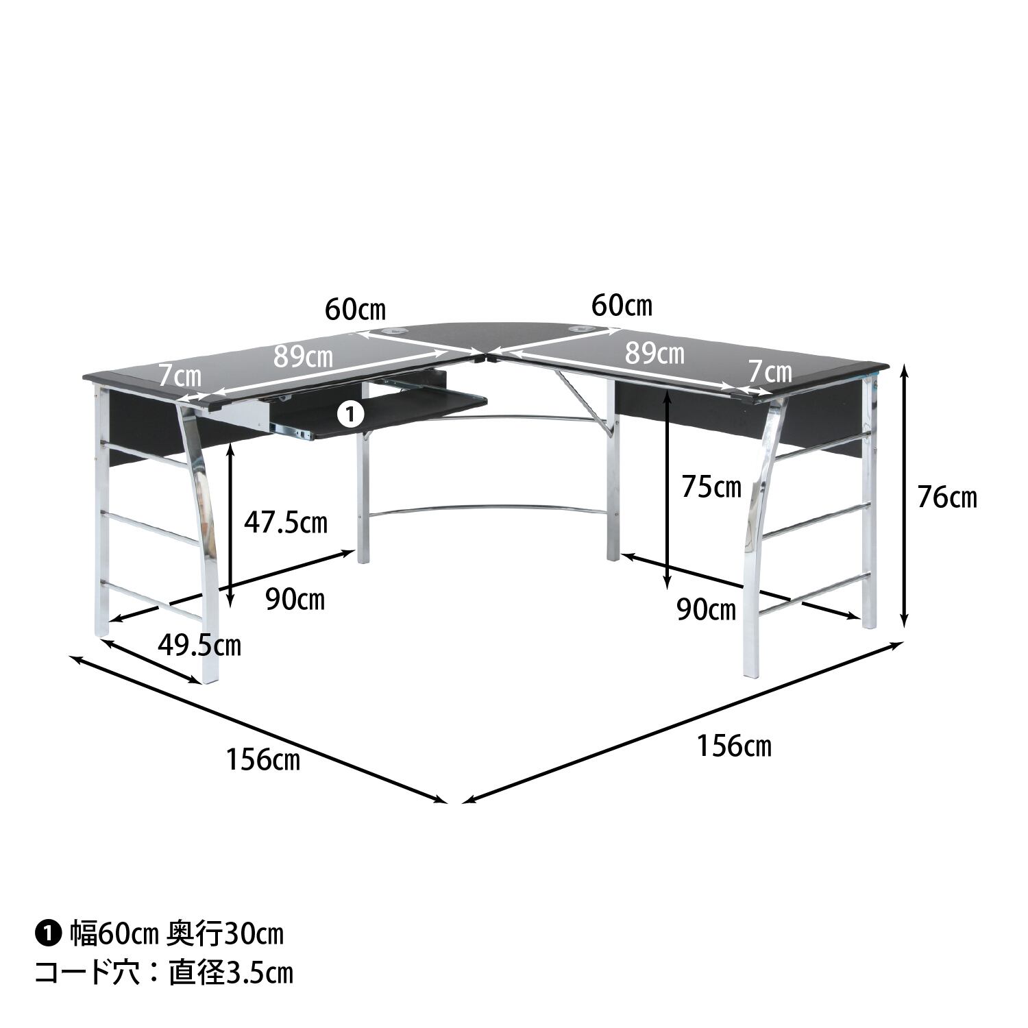 ※キーボードトレーは左右どちらでも取り付け可能です。