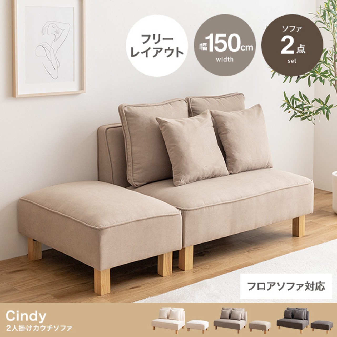 シンプルで洗練された印象の『Cindy(シンディ)』シリーズの2人掛けカウチソファ