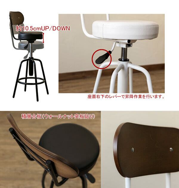レバー操作で座面の高さを約10.5cm変えられます(約61.5cm~72cm)