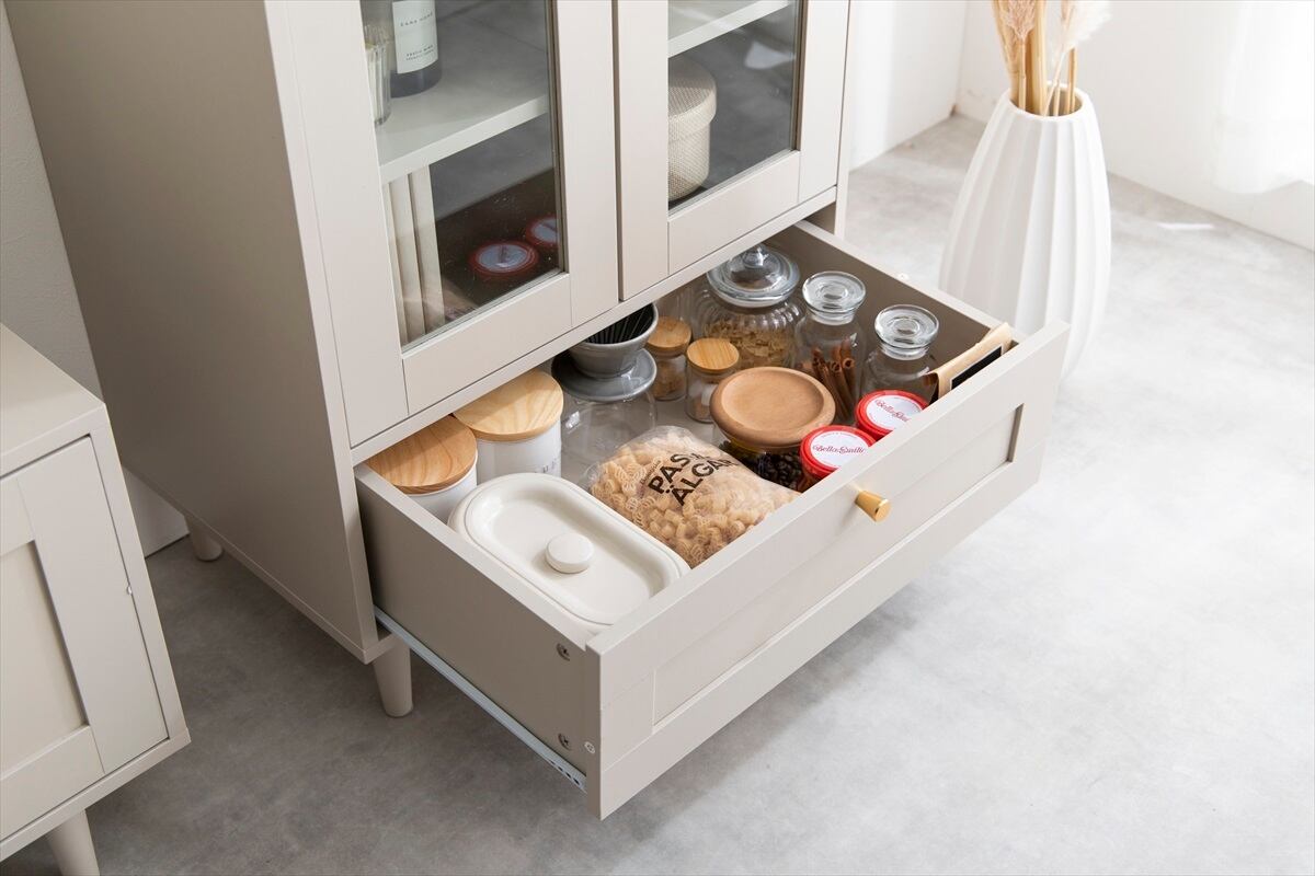 海外インテリア風の框デザインをあしらった『Calan(カラン)』ガラスキャビネット