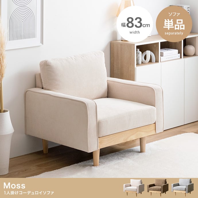 コーデュロイ×天然木がお部屋に上質感を醸し出す『Moss(モス)』1人掛けコーデュロイソファ