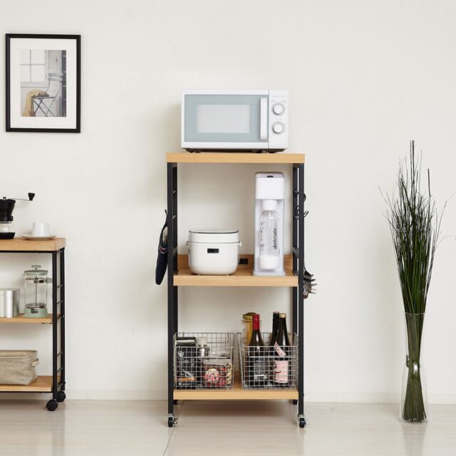 ◆通気性が良いオープン仕様で収納物が分かりやすく、キッチン家電の収納に便利です。