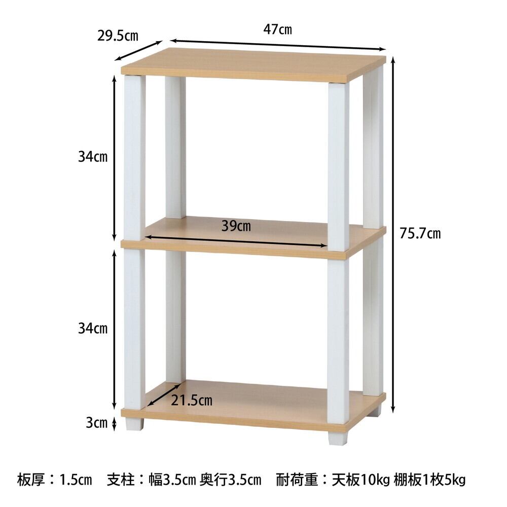 シンプルなデザインの3段ラックです。お部屋に馴染みやすいカラー展開です。オープンタイプなのでお部屋に圧迫感を与えず設置できます。お気に入りコレクションのディスプレイ用としても使用できます。